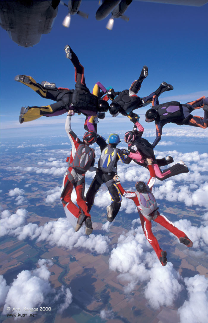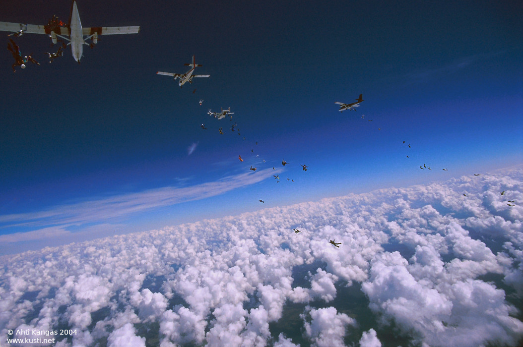 Skydivers lining up for exit from OH-DZF @EFHN. Hanko 2009.